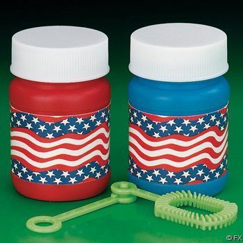 Mini American flag bubble bottles are decorates in stars and stripes and filled with fun bubbles! These 2", 1 oz bubble bottles are great party favors for that 4th of July barbecue or picnic. Patriotic goody bags or gift boxes aren't complete without red, white, blue and bubbles! 2 dozen per set.