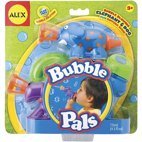 Blow lots of bubbles with 2 bubble wand pals! Comes with a dipping dish, tear free bubble solution 4.5 fl oz/133ml.