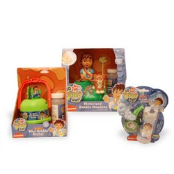 Kids are sure to have squeaky clean fun with their friendly pal, Diego, and this bubble gift pack. It includes a Diego Mini No-Spill Bucket set, Diego Bubble Machine and Diego Bubble Whistle. There's even a bottle of non-staining, non-toxic bubble solution to get the fun started. No batteries required.