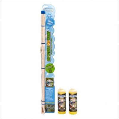 Beeboo Big Bubble Mix makes blowing big bubbles easy and fun! It's as simple as mixing one gallon of water with one bottle (16 fl oz) of concentrate. Create huge, colorful, long lasting bubbles. Nothing works better for blowing big bubbles than our Beeboo Big Bubble Starter Wand. Each wand is constructed using two 30" wooden handles and a section of super absorbent cotton cloth. Making big bubbles has never been so easy and fun! Amaze your friends, family and neighbors. Even complete strangers will stop and stare. Sure to be a big hit with the whole family (ages six and up). Get outside and play. Includes The Starter Pack, containing one Beeboo Big Bubble Starter Wand and two bottles of Beeboo Big Bubble Mix.