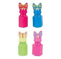 A colorful assortment of butterfly themed bubble bottles. Give these away at your next garden party.